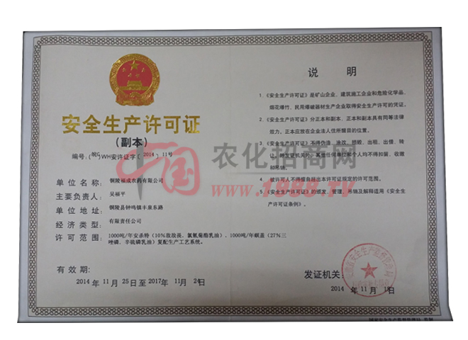 安徽銅陵福成農(nóng)藥有限公司是一個(gè)集研發(fā)、生產(chǎn)和銷售為一體,以農(nóng)藥劑型 業(yè)務(wù)為核心的國(guó)家定點(diǎn)農(nóng)藥制劑企業(yè)。公司坐落于銅陵市金橋開發(fā)區(qū),地理位置優(yōu)越,寓于皖江經(jīng)濟(jì)圈內(nèi),位于長(zhǎng)江黃金水道南岸,緊鄰蕪銅快車通道和演講高速公路,水路交通便利。