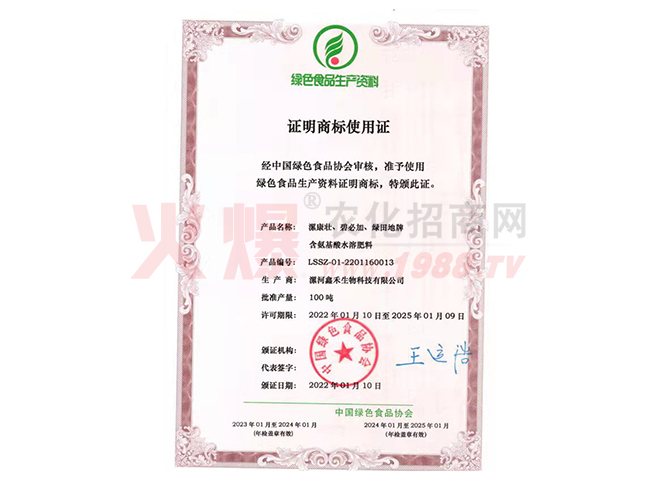 漯河鑫禾生物科技有限公司是農(nóng)業(yè)科技的殿堂,她沉積了待以開(kāi)發(fā)的物價(jià)科技財(cái)富,擁有大批的科技人才,公司目前擁有國(guó)家肥料登記證十一種,注冊(cè)商標(biāo)五個(gè),發(fā)明專(zhuān)利一項(xiàng)。